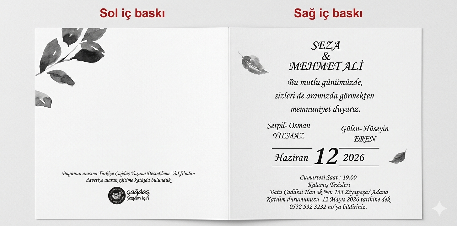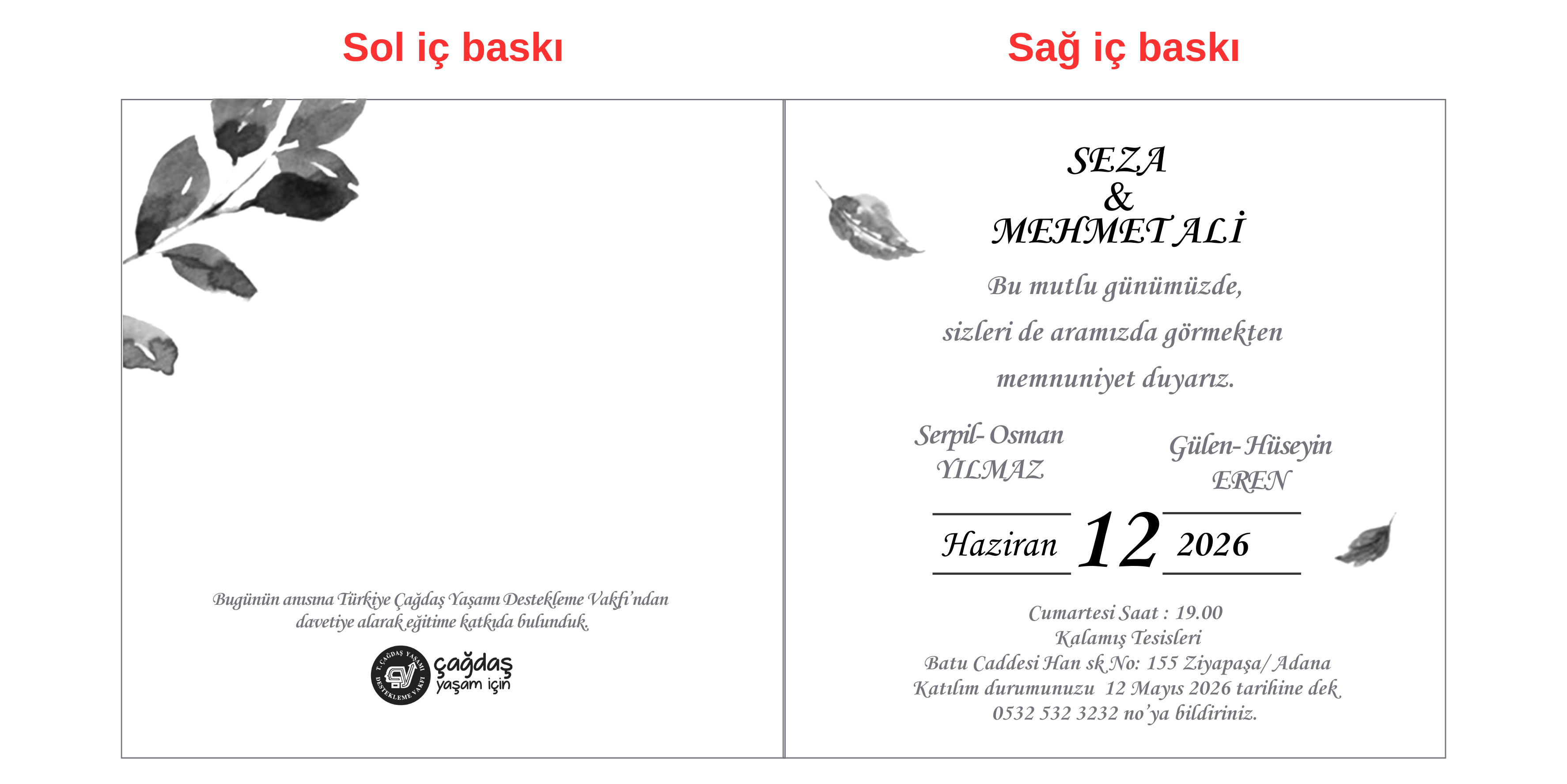 Fiyatlara 2 renk iç baskı ve zarflar dahildir. Baskı için bizimle bağlantıya geçiniz. (vakif@cydd.org.tr)