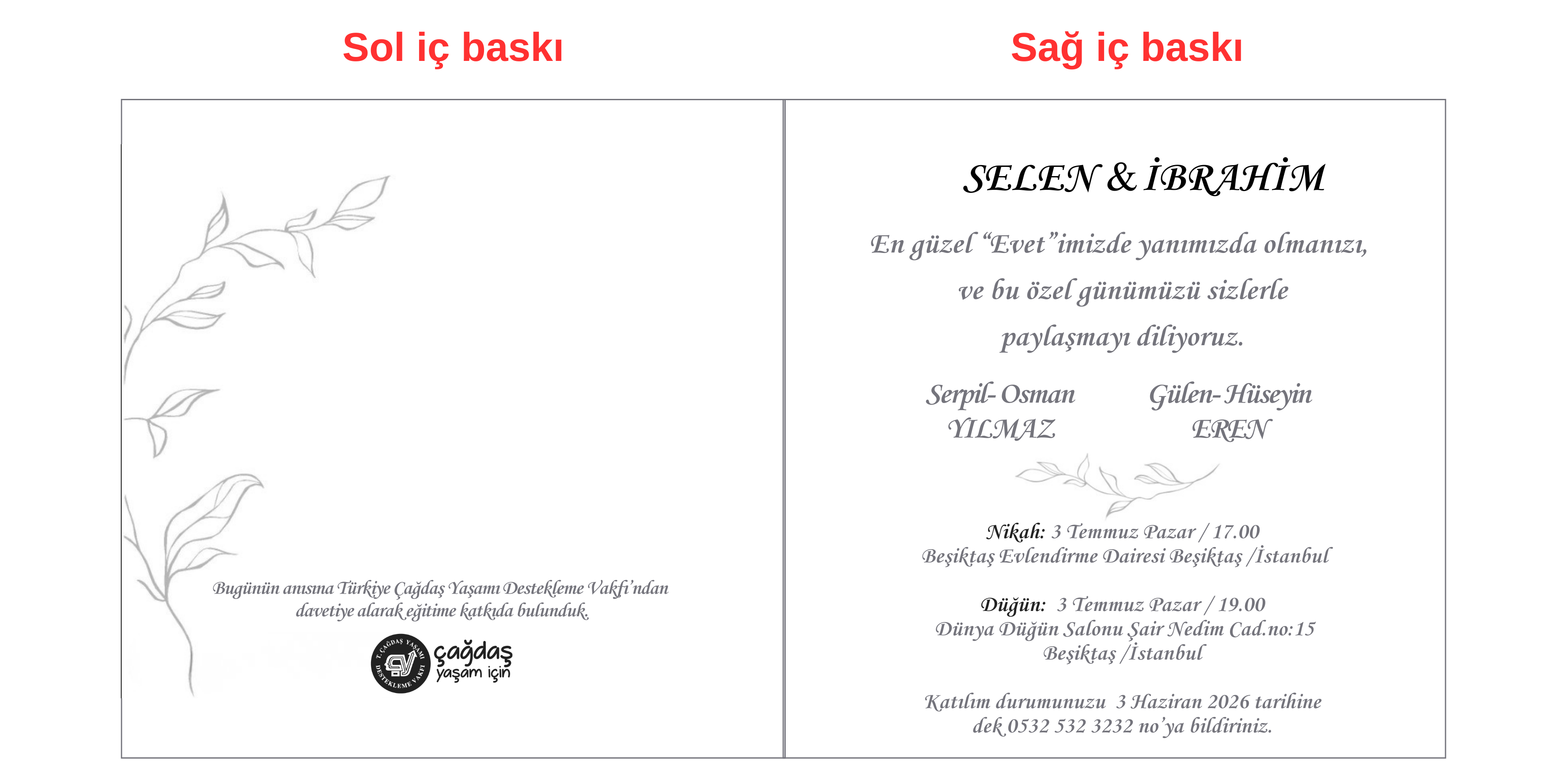 Fiyatlara 2 renk iç baskı ve zarflar dahildir. Baskı için bizimle bağlantıya geçiniz. (vakif@cydd.org.tr)